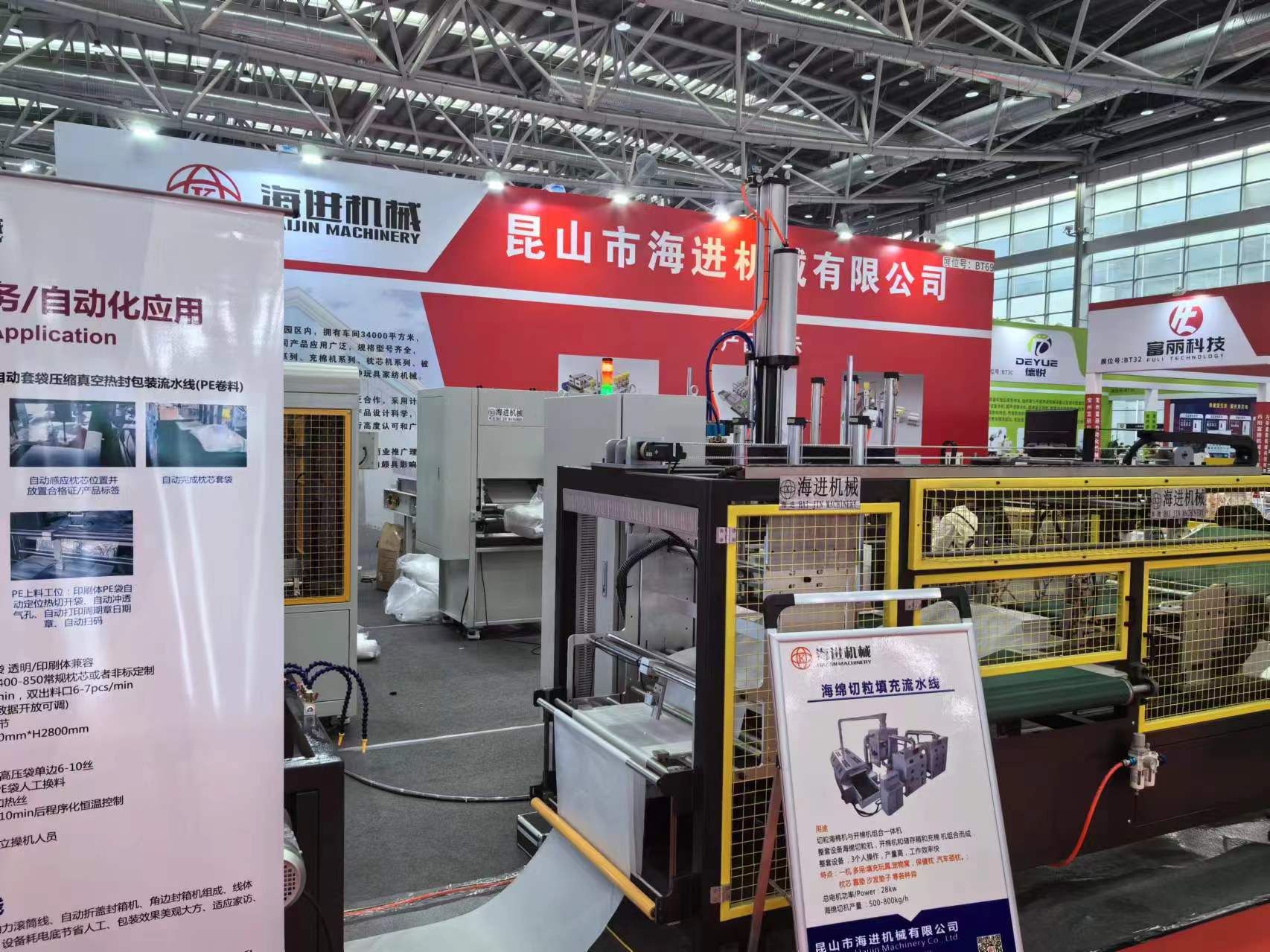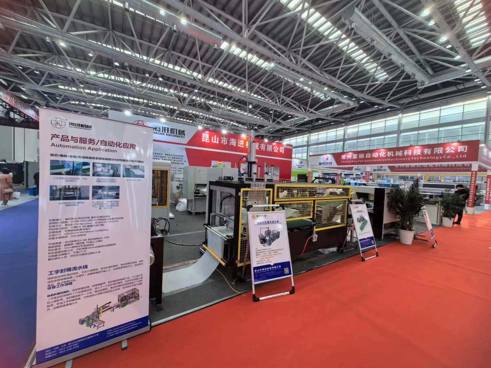本次展会我公司参展的产品有枕芯自动拍打装袋真空压缩机,枕芯自动打卷装袋机,自动纸箱打包机等三款自动化设备,引起广大新老客户好评!